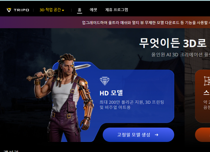 저는 3D모델 생성에 tripo3d AI 사이트를 사용하는데요.