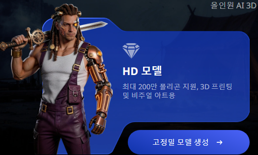 그래서 외부에서 3D모델을 AI로 생성하거나 다운로드해 사용하는 것이 좋습니다.